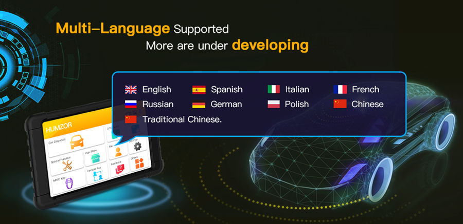 Support 9 languages at present: English, Spanish, Italian, French, Russian, German, Polish, Chinese, Traditional Chinese. More are under developing, can up to 23 kinds.
