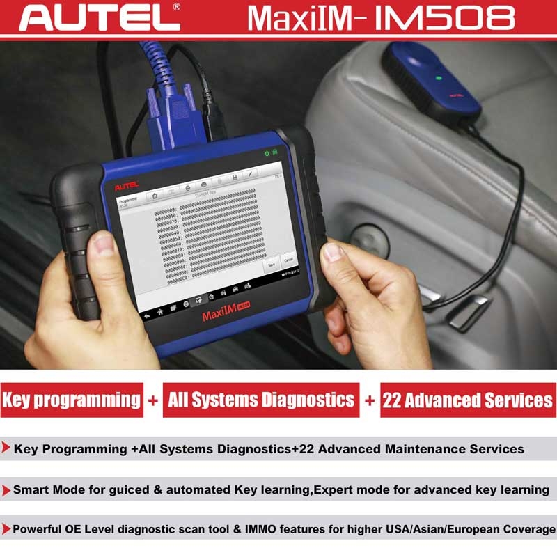 Autel IM508 is a professional car diagnostic scanner that provides extraordinary service functions for the immobilizer system, including: immobilizer system status, key learning, key add, all keys lost, remote control learning, remote control add, chip read and write. It's a professional solution for car keys and remote controls and prevents your car from being stolen!