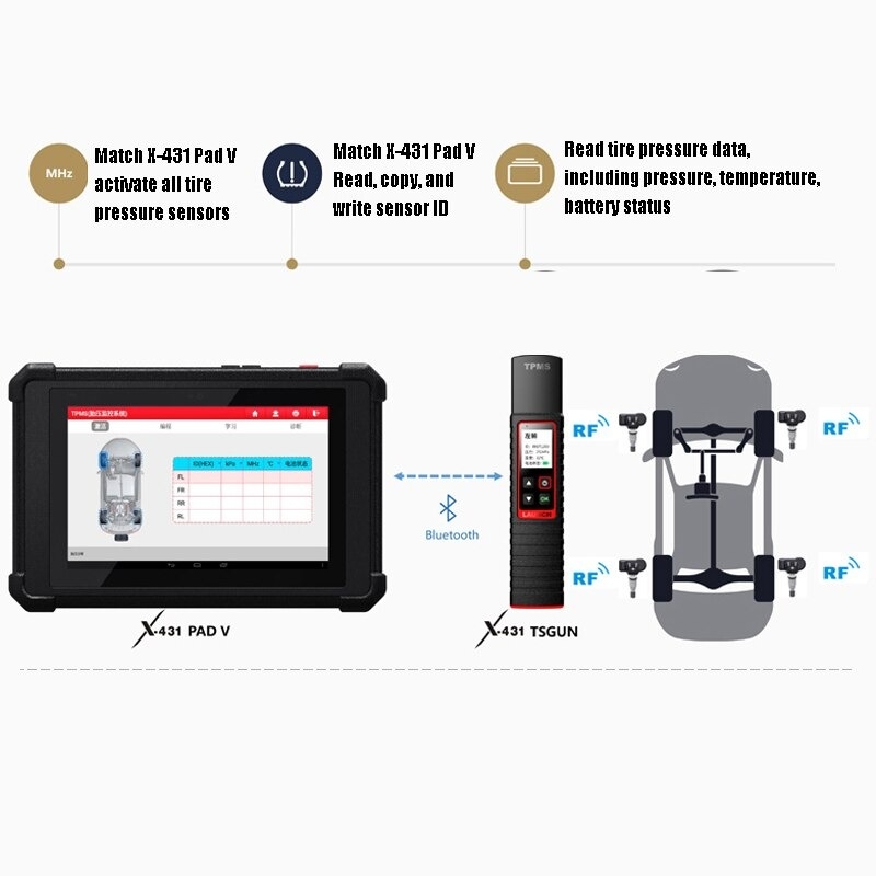 Launch X-431 TSGUN WAND icludes all OBD2/EOBD Functionality. It's A portable, affordable and formidable powerful TPMS tools, designed to work with X-431 v/ v+/ pro3/ pad3/ pad v diagnostic tools to expand new functions and generate new revenues.