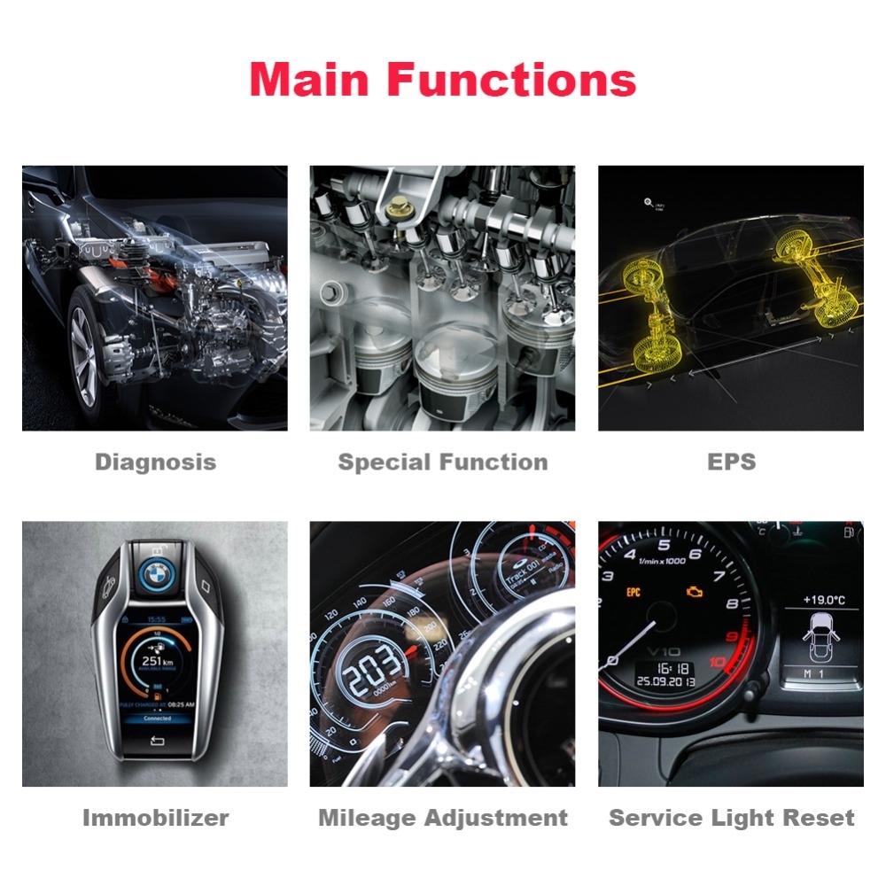 Special Functions: Key Programming, TPS, Oil Resetting, EPB, TPMS, Airbag Reset, ECU Flash, etc.